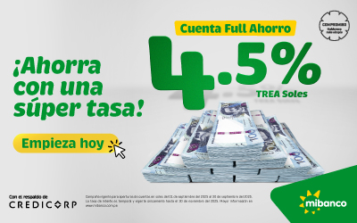 Haz crecer tu dinero con una tasa promocional de 4.50% TREA en soles.